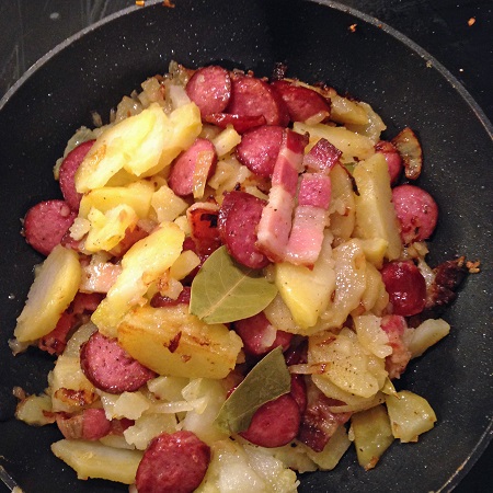 In vielen Klöstern gab und gibt es noch Kartoffeln und Kraut im eigenen Garten. Dies erklärt auch, dass viele Gerichte aus Kartoffeln und Kraut so beliebt sind. Auch war es gute Tradition, dass es am Sonntag bzw. Festtag eine Fleischsuppe gab – so ist das Tiroler Gröstl eine gute Möglichkeit, das Suppenfleisch geschmackvoll weiter zu verarbeiten.