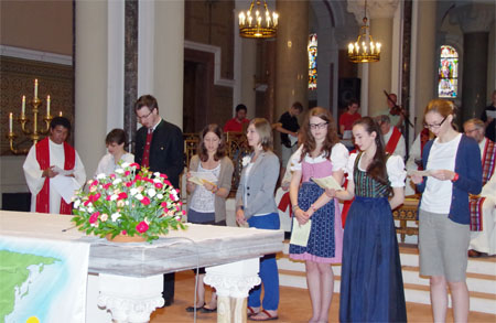Sechs junge „MissionarInnen auf Zeit“ wurden beim 31. Pfingstfest in St. Gabriel nach Afrika, Asien und Lateinamerika entsandt und ein junger Steyler Missionar aus Indien erneuerte die Ordensgelübde.