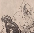 Das Bild stammt von Adi Bachler (1998), der im Pfarrhof Buchkirchen in Oberösterreich eine wunderbare Kapelle geschaffen hat.Täglich kündet das Bild das große Geheimnis unserer Erlösung: „Für uns ist Christus gestorben, für uns ist er auferstanden.“