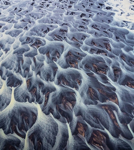 Stefan Brenner bereist immer wieder Island. Dort entstehen beeindruckende Bilder der urtümlichen, von Wasser geformten Landschaft. Das Eis der Gletscher und die sich ständig verändernden Formationen von Sand und Kies geben die unerschöpfliche Motivquelle ab. Vieles wirkt zunächst rein abstrakt und lässt erst bei genauerer Betrachtung den Ursprung in der Natur erkennen.